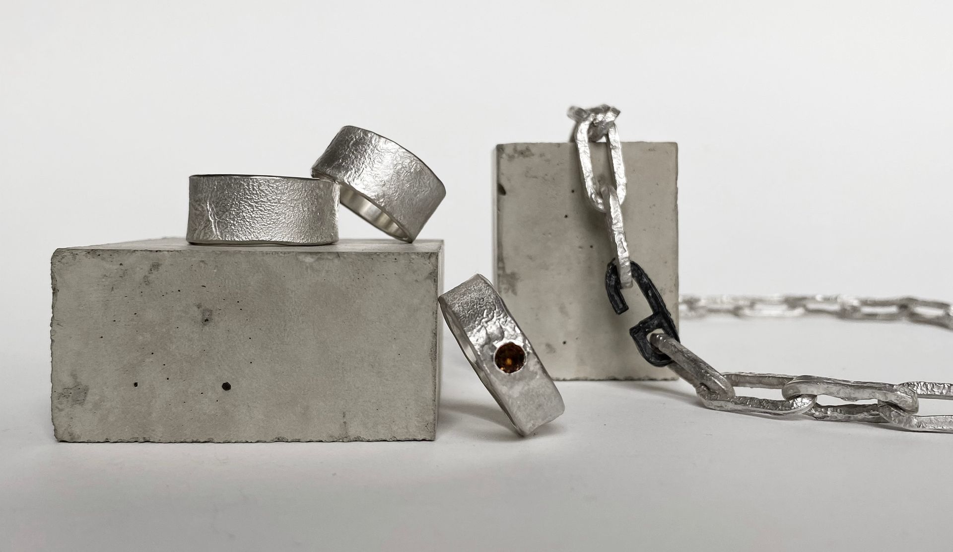 Handmade silver band ring w/ stone (raw, matte finish)
